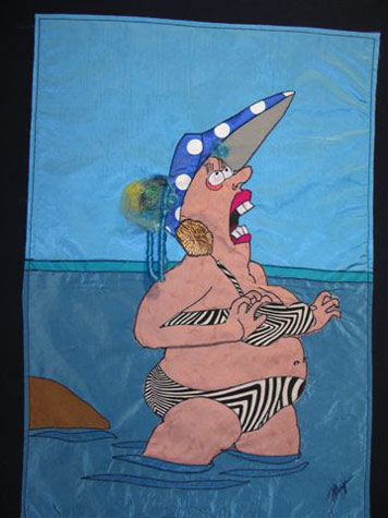 Ein Besuch im MUSE-O lohnt sich derzeit besonders, weil (noch bis zum 26. März) die zauberhafte Ausstellung von Stoffkarikaturen des Cartoonisten Peter Ruge läuft. Unter dem Titel „Strand-Gut – Bilder über die schönste Zeit des Jahres“ zeigt Ruge bissig-liebevolle Strandszenen, die er aus farbenprächtigen Stoffen zu-sammengenäht hat.